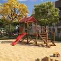 Em um condomínio completo com: Piscina adulto, churrasqueiras, academia, espaço pet, playground, horta , piquenique, salão de festas com churrasqueira.