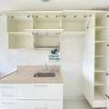 Armários nos dois quartos, na cozinha e nos dois banheiros.