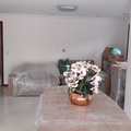 Imóvel semimobiliado com sofá, ar condicionado, mesa de jantar com seis lugares, máquina de lavar roupas e televisão de 50'.
