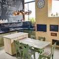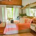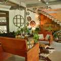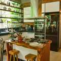 Casa principal em quatro pavimentos. Subsolo com amplo ateliê, copa e área de serviços. Conceito aberto no andar principal, unindo sala de estar, cozinha e sala de jantar. Estilo industrial e rústico, com banheiro de vidro. Sala de TV e suíte principal no segundo pavimento, com varanda, closet e banheiro. Terceiro pavimento com biblioteca e suíte auxiliar.