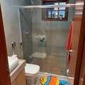 -Móvel embutido,duas pias e ducha higiênica com água quente e fria