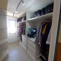 -closet com porta de correr espelhado com penteadeira em vidro com espelho.