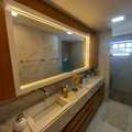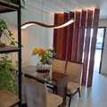 - Divisória em madeira maciça com iluminação de Led embutida no piso.