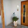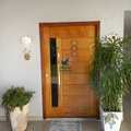 - Porta social pivotante madeira maciça e detalhe em vidro