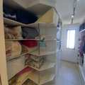 -cômodo para material de limpeza e ferramentas com 1 Bancada em madeira e prateleiras.