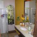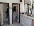 No segundo piso: um quarto de vinte metros quadrados, dois quartos de seis metros quadrados cada e uma sala de banho (com dois vasos sanitários, duas pias, dois chuveiros, armários embutidos e preparada para hidromassagem).
